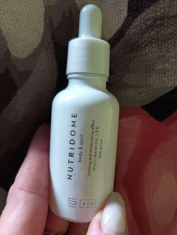 Face serum with niacinamide by NUTRIDOME contains a very high concentration of vitamin B3 - ideal for those who struggle with acne and loss of firmness. Its effect has been scientifically proven. Vitamin B3 promotes the formation of ceramides and lipids that seal the skin, preventing transepidermal water loss (TEWL), thuseffectively hydrating dehydrated skin. The ingredient lightens hyperpigmentation as it inhibits melanin production in the skin, while preventing further discoloration. Vitamin B3 also has an antioxidant effect, that is, it delays the aging process of the skin by protecting it from free radicals. It strengthens and regenerates the skin's protective layer, regulates sebum production, and normalizes the skin's exfoliation process. Vitamin B3 evens out skin tone and helps treat acne, accelerating the healing of blemishes. It reduces the evaporation of water from the epidermis, thus improving its hydration. Narrows pores and smooths the skin. Has an anti-wrinkle effect - shallows wrinkles by stimulating collagen synthesis.